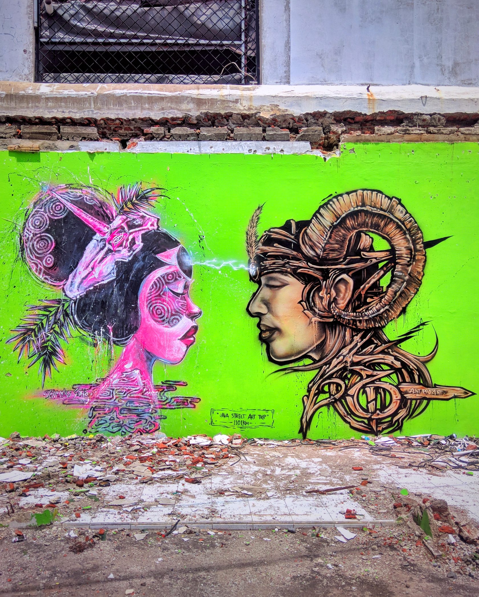 'Free Wall Project' Zarinka Soiko x Zent Prozent, Survive Garage, Yogyakarta, Indonesia